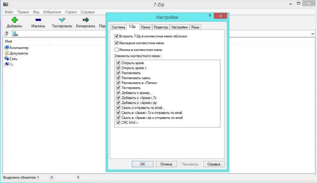 Программа встраивается в контекстное меню операционной системы Windows и может быть запущена из любого места. 7-Zip умеет работать с большинством популярных форматов, включая свой «родной» — 7z.